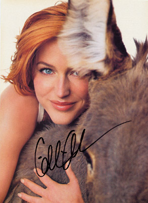 This item is an autographed 8x10 print (glossy, laminated from magazine) of Gillian Anderson. It comes with a Certificate of Authenticity from the